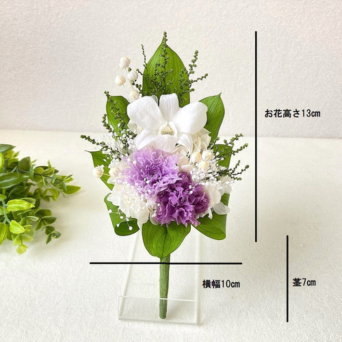 | 商品の特徴 | 花束 仏花 一対】 コンパクトSサイズのプリザーブドフラワーお供え 束。om792◉オーダー*仏花*お供え*一対*アレンジメント/t。花束 仏花 一対】 コンパクトSサイズのプリザーブドフラワーお供え 束。❥仏花のオーダーをお受けいたします・一対or1基、色、size・出品の品でお気に入りの番号など、ご希望をコメントにてご記入ください。花材が在庫切れの場合、似たような花材を使用したり、お時間をいただく場合がありますまた、生花を加工したお花を使用しているため、大きさや色などの雰囲気が少し変わることがあります発送はメルカリ便(保証、追跡あり)になりますクリアケースご希望の場合は1基につき追加料金¥1000になります。仏花 プリザーブドフラワー。主にプリザーブドフラワー使用し、小花やリーフなどはアーテフィシャルフラワーを使用します。クロネコ レインボーローズ ブルーローズ ダイヤモンドプリザーブドフラワーギフト | ||